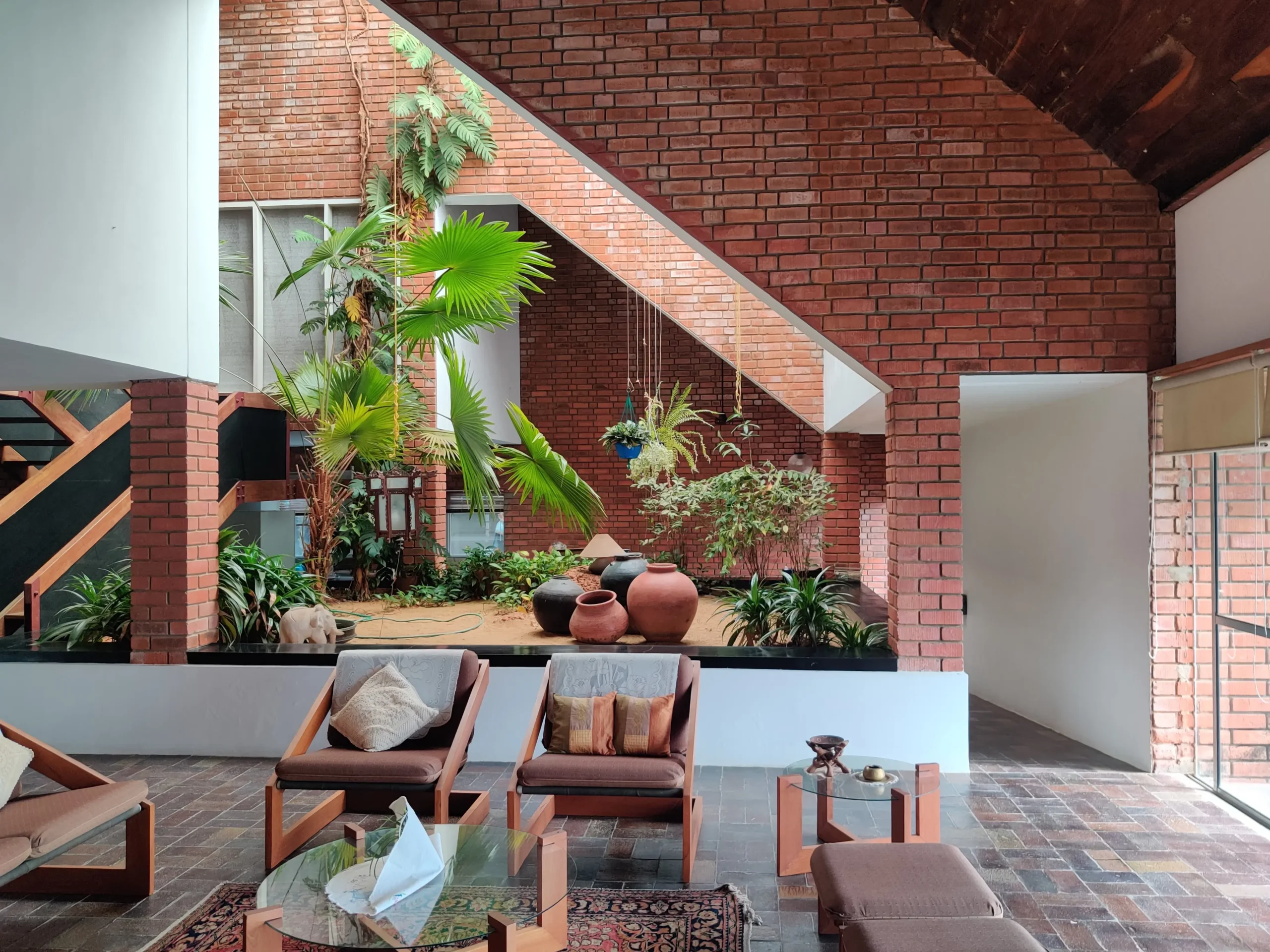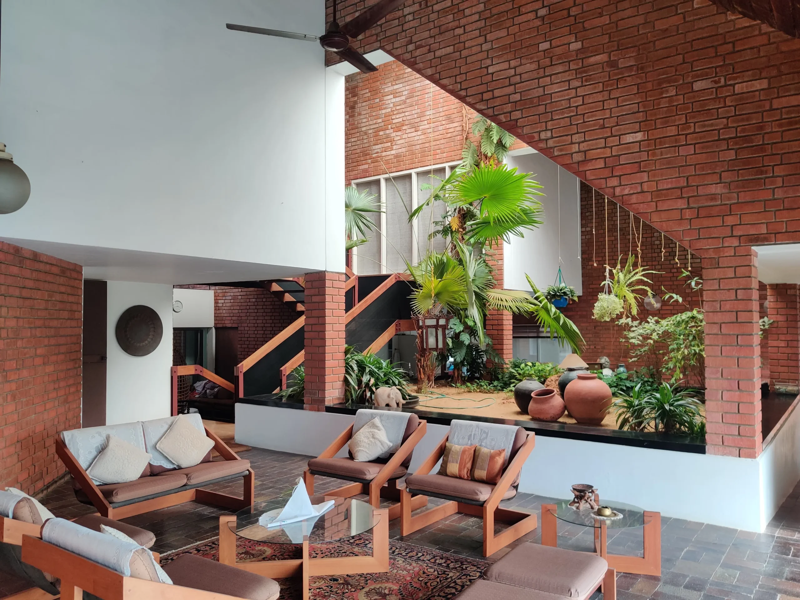 Residence for Ar. Jacob George parents shows his commitment to bringing the outside in, with the use of central courtyard, and large expanses of glass that provide an abundance of light and air characteristic of all our works. The furniture in the house was also custom designed. Total project cost: Rs. 2 lakhs.
