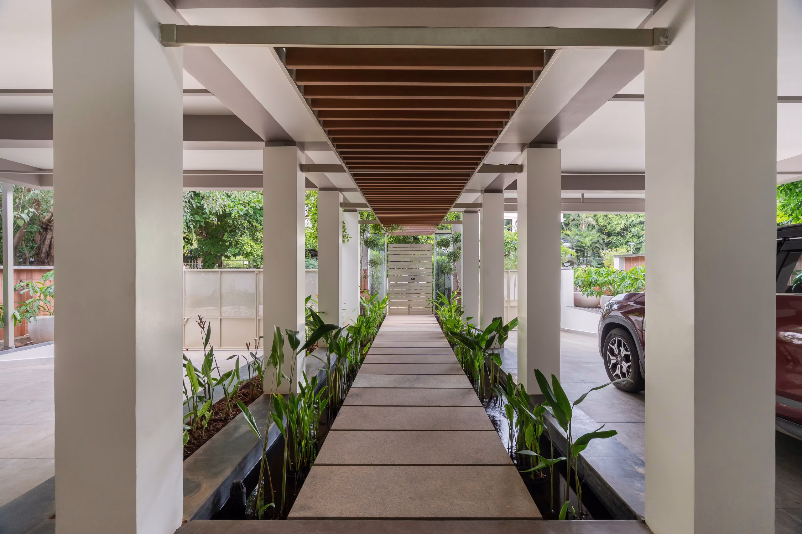 Set on a compact 1.92-ground (approx. 10-cent) plot in the heart of Nungambakkam, this 9,000 sq.ft contemporary residence embodies biophilic design within a dense urban fabric. The client’s requirement for a 5 BHK home prompted a vertical layout across three levels, balancing functionality with openness and light. The result is a refined expression of tropical modernism—relaxed, sophisticated, and designed for seamless indoor–outdoor living.